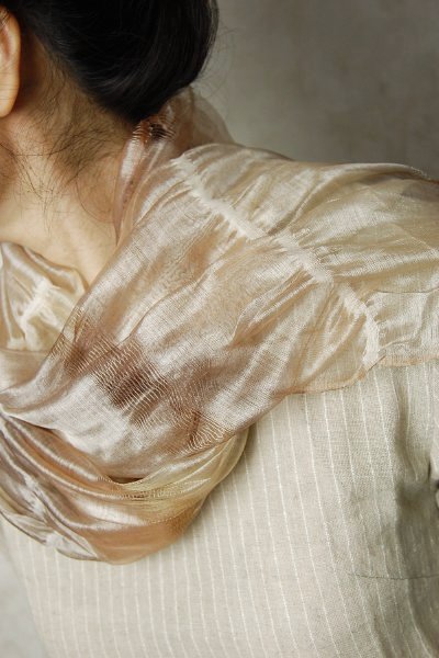 ギフト対応 インドならではの軽く細い絹糸で織り上げられたシルクシフォンストール!ポリウレタン素材を織り込むことによりライクラと呼ばれる伸縮性(横方向)を持たせたストールです☆