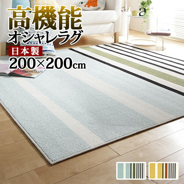 【送料無料】 200x200cm 2畳 正方形 カーペット マット ラグマット 防ダニ 北欧デザインラグ トラベラー 防音 絨毯 じゅうたん リビングマット 床暖房 ホットカーペット対応 リビング 滑り止め 北欧 柄 ストライプ カラフル スミノエ 日本製 国産 おしゃれ 33100308